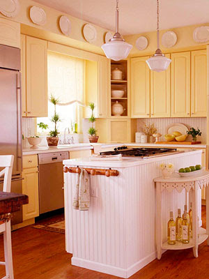 Eddie Ross also likes to hang plates in the space above his cabinets. He has an incredibly gorgeous collection of antique ironstone, which you can pick up on eBay and at flea markets. You could also hang just plain, cheap, white plates and platters to achieve a similar effect.