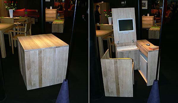 This is a desk that I`m proud of. It comes from MTI Impex, a Romanian based furniture developer. It looks like a cube that can be opened to reveal a desk and a chair. Perfect for small spaces, the Hideaway Desk and Chair is made from solid wood and has a beautiful, natural colour.
